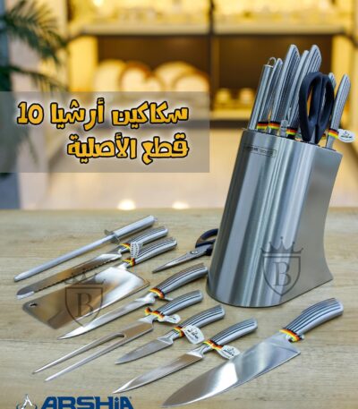 سكاكين أرشيا تيتانيوم استاند خشب 10 قطع كود 3269