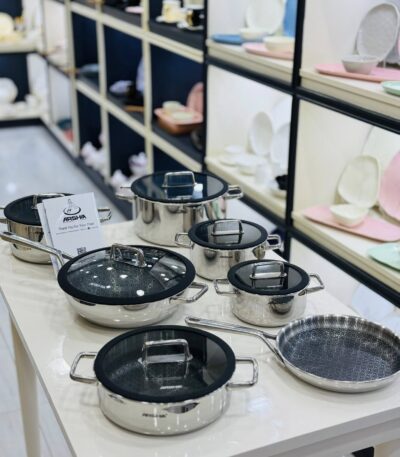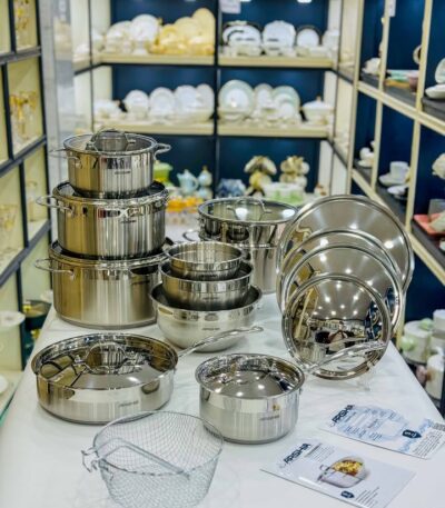 طقم حلل استيل ارشيا الاصلي بأكبر تكوين 17 قطعة + 4 غطيان هدية كود 3642