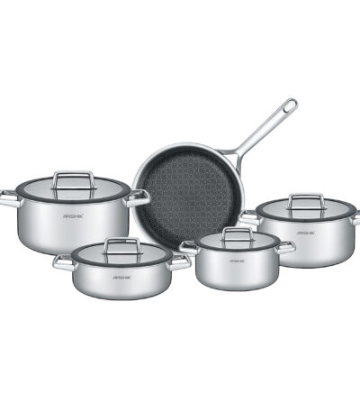 طقم حلل استيل ارشيا 10 قطع 3001 استيل 18/10